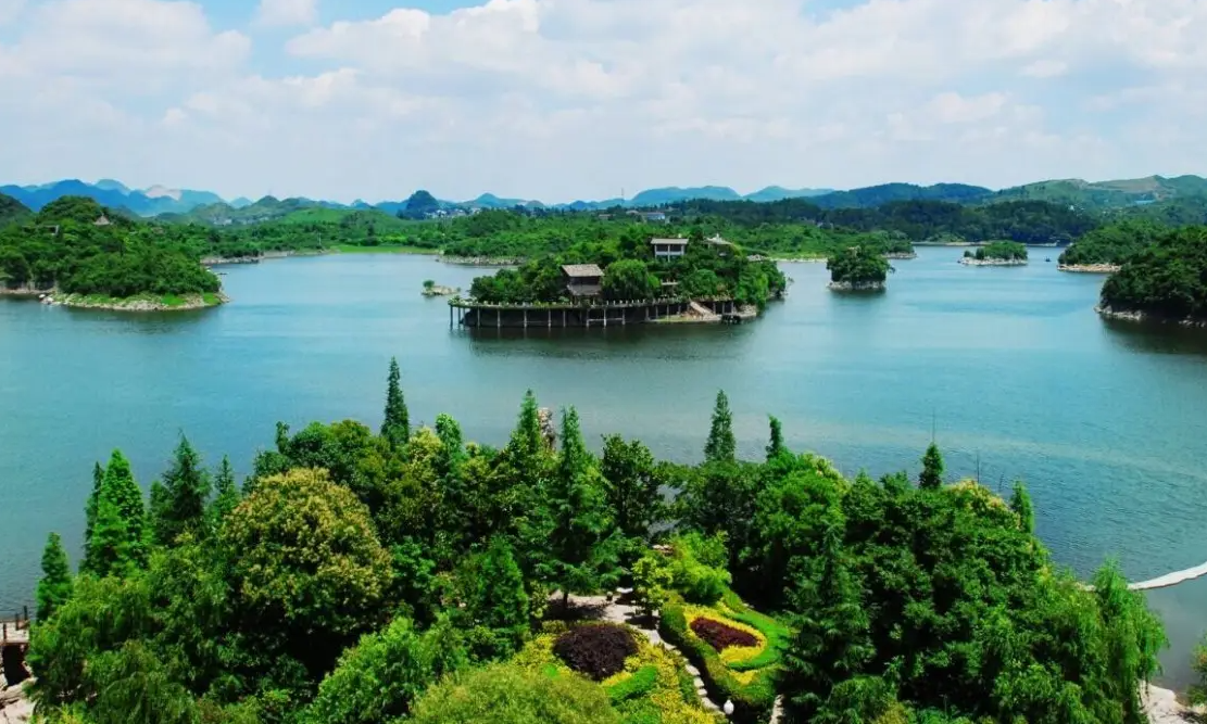 百花湖,位于贵阳市西北郊,地处贵阳市观山湖区朱昌镇和百花湖乡之间,距市区22公里。百花湖,景区总面积83平方公里,其中湖水和岛屿面积14.5平方公里,湖中岛屿108个,错落有致,远山清淡,近水碧澄。
